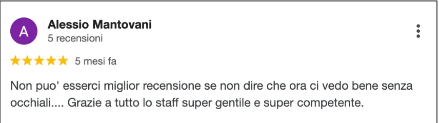 “Ho effettuato la Femto Lasik con loro e sono stato molto soddisfatto”